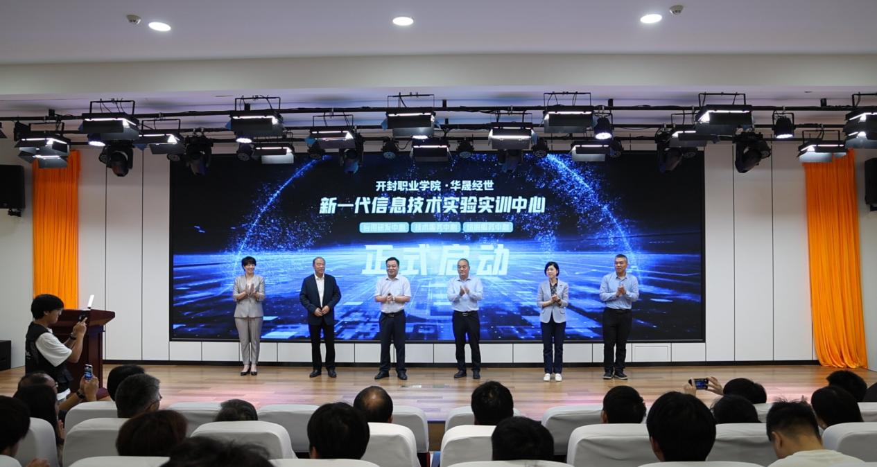 On the morning of September 26th, the unveiling ceremony for the “New Generation Information Technology Experimental and Training Center,” a joint initiative between Kaifeng Vocational College (KFVC) and Beijing Huasheng Jingshi Information Technology Co., Ltd., was held with great fanfare in the Academic Lecture Hall of Bi Sheng Building. In attendance were Zhang Yong, Chairman of Beijing Huasheng Jingshi Information Technology Co., Ltd., Executive Vice President Liang Shu, General Manager of the Operations Division Wang Hui, as well as KFVC President Xu Zhongkun, CPC Secretary of KFVC Chu Jianxin, Executive Vice President Liu Shanshan, and Vice President Zhang Difei, together with other key figures from both institutions. The event also featured representatives from relevant departments, along with faculty and students from the School of Information Engineering. The unveiling ceremony was presided over by Executive Vice President Liu Shanshan.