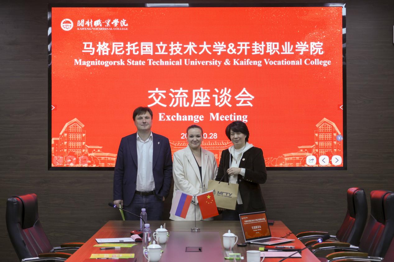 On the afternoon of October 28, a delegation from Magnitogorsk State Technical University of Russia - including Vice President Ruban Konstantin Alekseevich, and Vice President Nikulina Tatyana Leonidovna, along with Head of International Department Gorovy Stanislav Igorevich-visited our college, accompanied by Mr. Li Dianguang, Director of the Henan Modern Culture Development Center and other guests. The delegation took part in an exchange symposium held in the conference room. Liu Shanshan, the Executive President of KFVC, together with relevant department heads, participated in the discussions. The meeting was chaired by Zhang Qingfang, Director of the International Exchange Center.